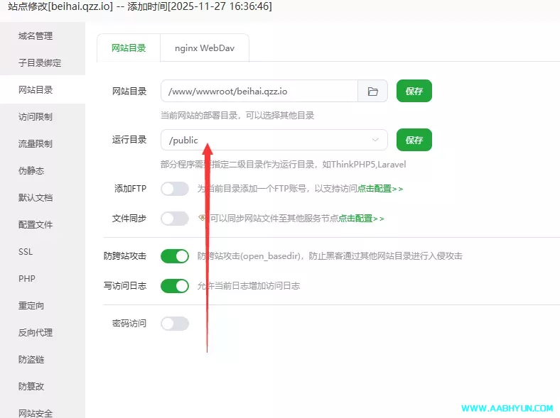 6.设置运行目录Public